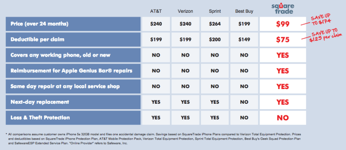 SquareTrade $99 for 2 yrs or $129 for 3 yrs and $75 per claim: