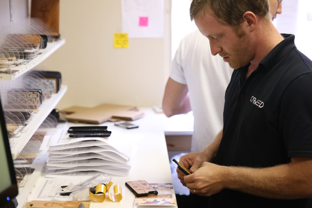 We were lucky enough to get the opportunity to visit the factory and take a tour of where Carved gives birth to their creations. Immediately when you walk into the factory, you are greeted by a desk covered in the latest from Carved. Solid wooden cases and slim bumpers that feature wood from a sunken ship cover the desk, giving you the first glimpse of what you’re in store for. The atmosphere is upbeat, with around 10 employees Carved has made this an exciting place to work. Everyone seemed to be moving quickly, focused and executing their job with precision.