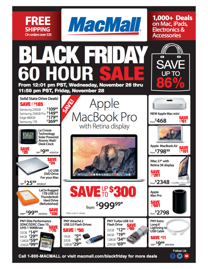 Update (11/26 2:00pm): MacMall’s Black Friday 60 Hour Sale is now live.