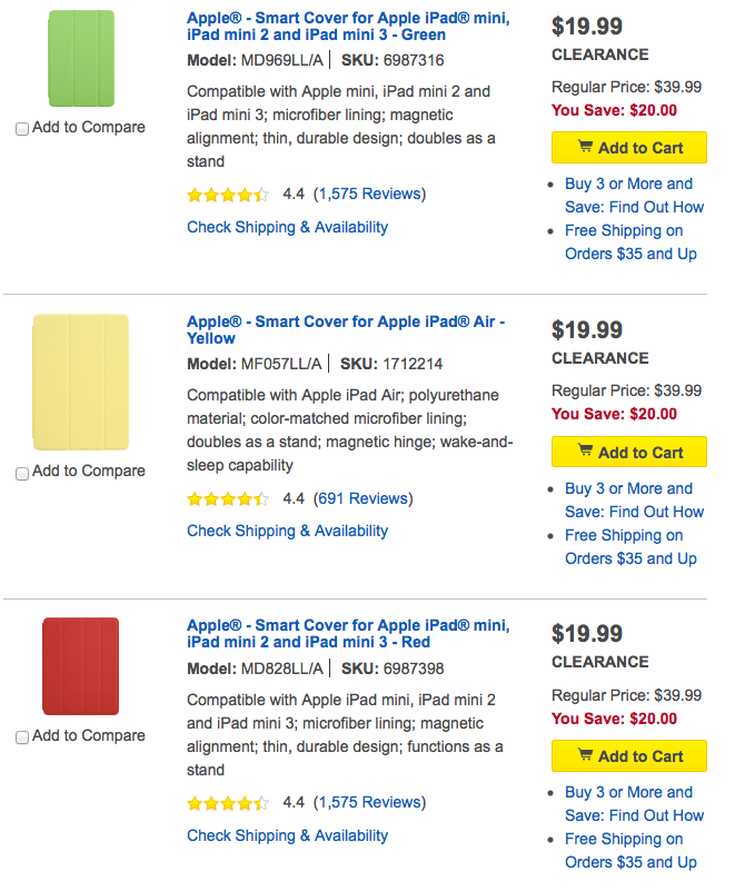 Each of these Smart Covers carries an original price of $39. You can easily find lower-quality Smart Cover replicas, but I’d recommend spending a couple extra bucks to ensure that you get the real thing. Free shipping on orders of $35+, otherwise just opt for free in-store pickup.