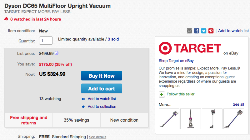 Target via eBay Daily Deals offers the Dyson DC65 Animal Upright Vacuum for $324.99 shipped. This is a savings of $325 off the original price, $137 better than Amazon’s offering and the lowest that we’ve seen it go for. This vacuum cleaner is rated 4.4/5 stars by over 500 Amazon customers.