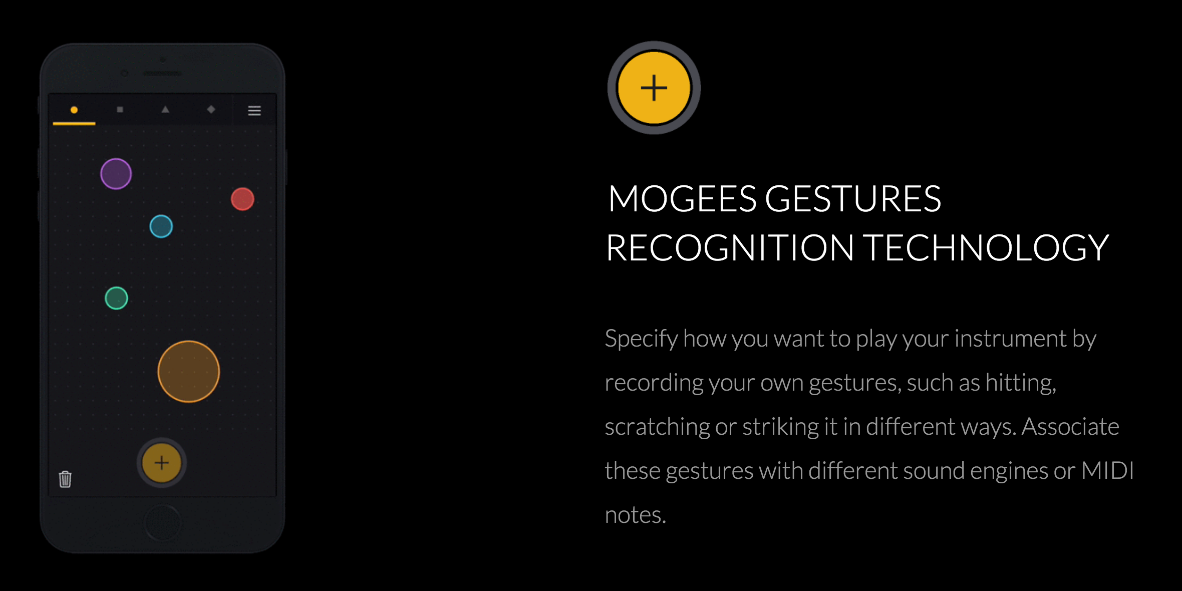 Mogees uses a combination of sensors and a “trainable” iOS app to detect your movements and turn them to sounds. After placing the sensor on a surface, users first register gestures on different parts of the “instrument” which allows Mogees to assign sounds to individual locations.