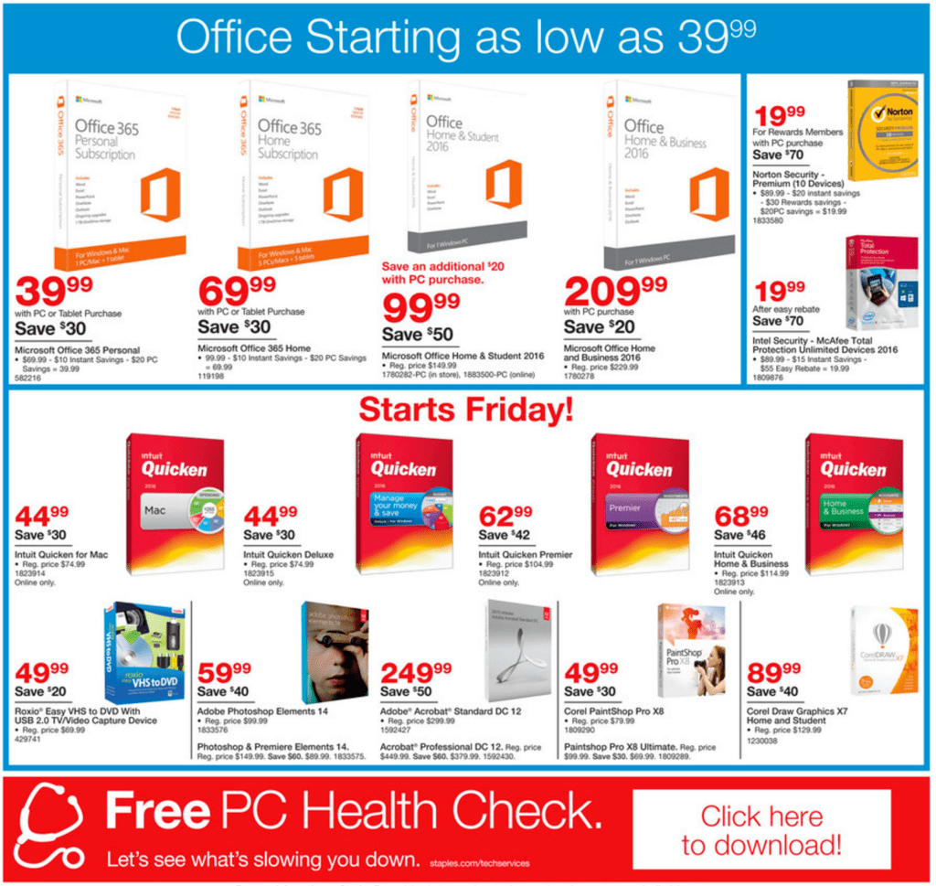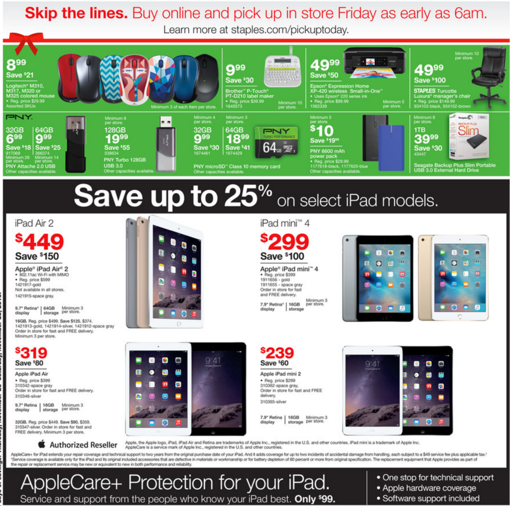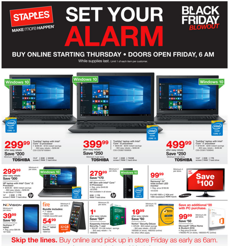 The stream of Black Friday ads continues: this morning we are getting our first look at what Staples is set to offer Thanksgiving weekend. There are over 20-pages worth of deals all together. Staples will be kicking off its online sale on Thursday, with in-store doorbuster deals starting Friday at 6am.