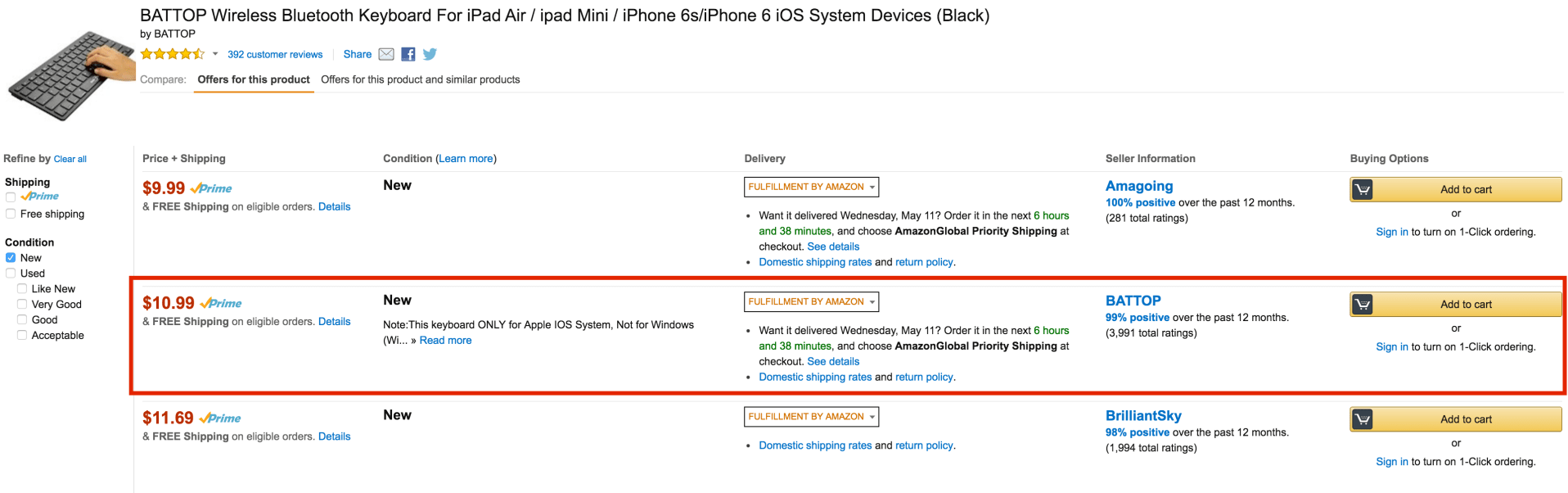 - Choose BATTOP as the seller (looks like this)