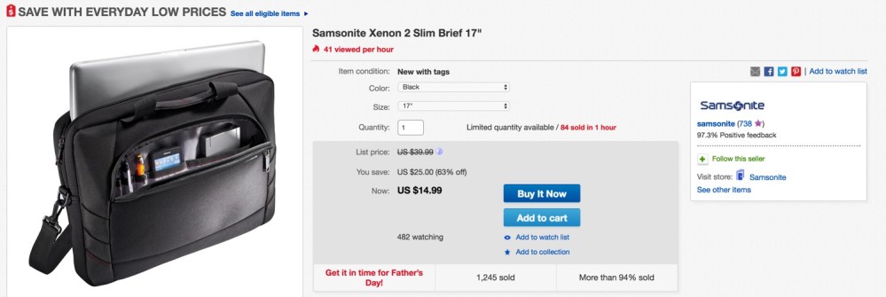 Samsonite via eBay is offering its Xenon 2 17.3-inch Laptop Slim Briefcase for $14.99 shipped. That’s $25 off the original list price/ Amazon’s listing and the lowest we can find for it.