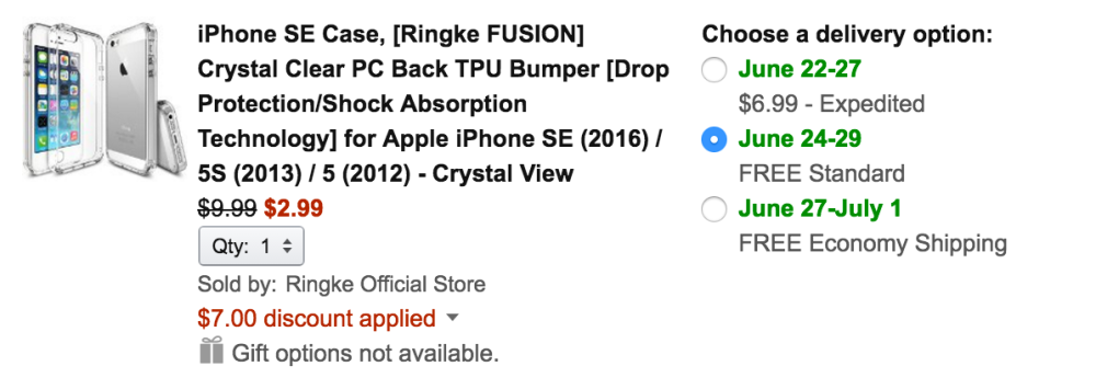 The Ringke Official Store (99% positive feedback over the last 12 months from 13,000+) via Amazon is discounting a number of its iPhone 6/s/Plus/SE. Prices start at $2.99 and free shipping is available on every order. You’ll want to use the Ringke listing without Amazon fulfillment (looks like this). Be sure to pay attention to the item-specific promo code for each listing.