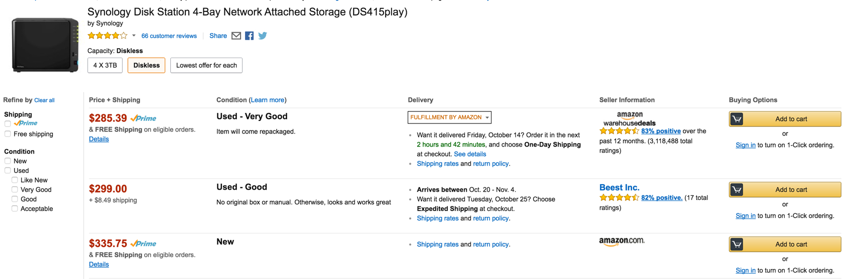 Amazon is offering the Synology Disk Station 4-Bay Network Attached Storage (DS415play) for $335.75 shipped – It might take awhile to ship, but you can get it direct next day from Synology for $399 – still $100 less than usual. This Drive rarely dips below $500 so today’s probably the day to snap one up.