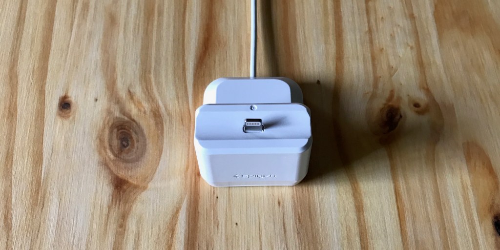 This dock doesn’t include a Lightning cable and Spigen states that it’s specifically designed for either the Apple official cable or Spigen’s MFi cable’s (which are a great deal at $22.99 for four). The bottom of the dock features a non-slip Nanotac base. Unfortunately, this dock doesn’t work when using something like a Podskinz case cover.