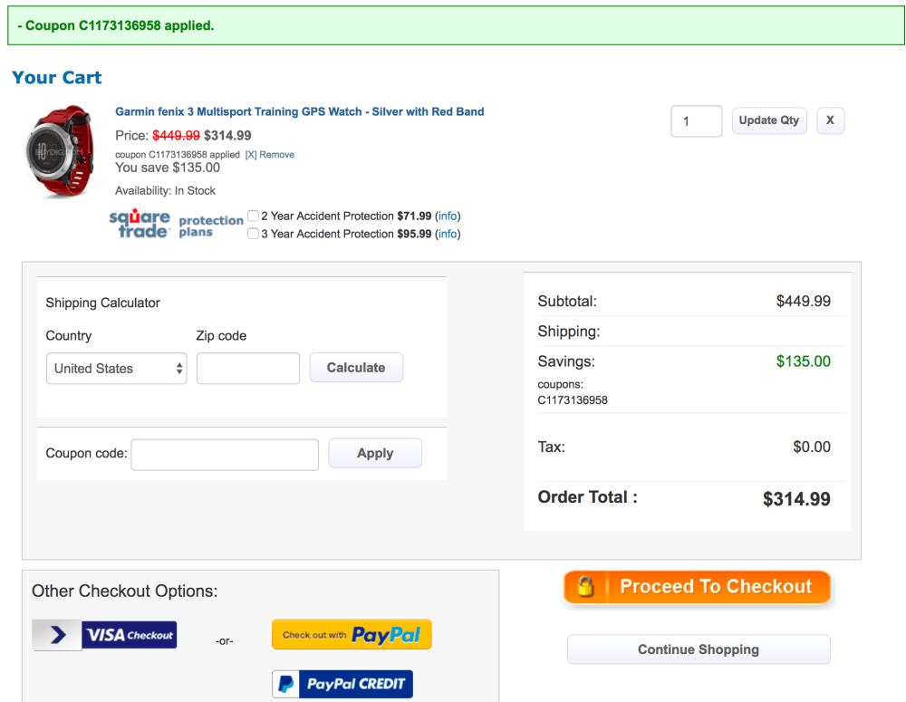 BuyDig is offering the following Garmin Fenix 3 GPS Smart Watches at deep discounts when you use the promo code C1173136958 at checkout. They all receive 4+ stars at Amazon where they are sold at full price.