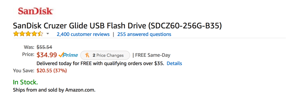 Amazon is offering the SanDisk Cruzer Glide USB 2.0 Flash Drive for $34.99 shipped. Also at Best Buy. For comparison, Walmart has it for $69 and it’s a match of the all-time low price. Rated 4.4/5 by 2,400 Amazon customers.