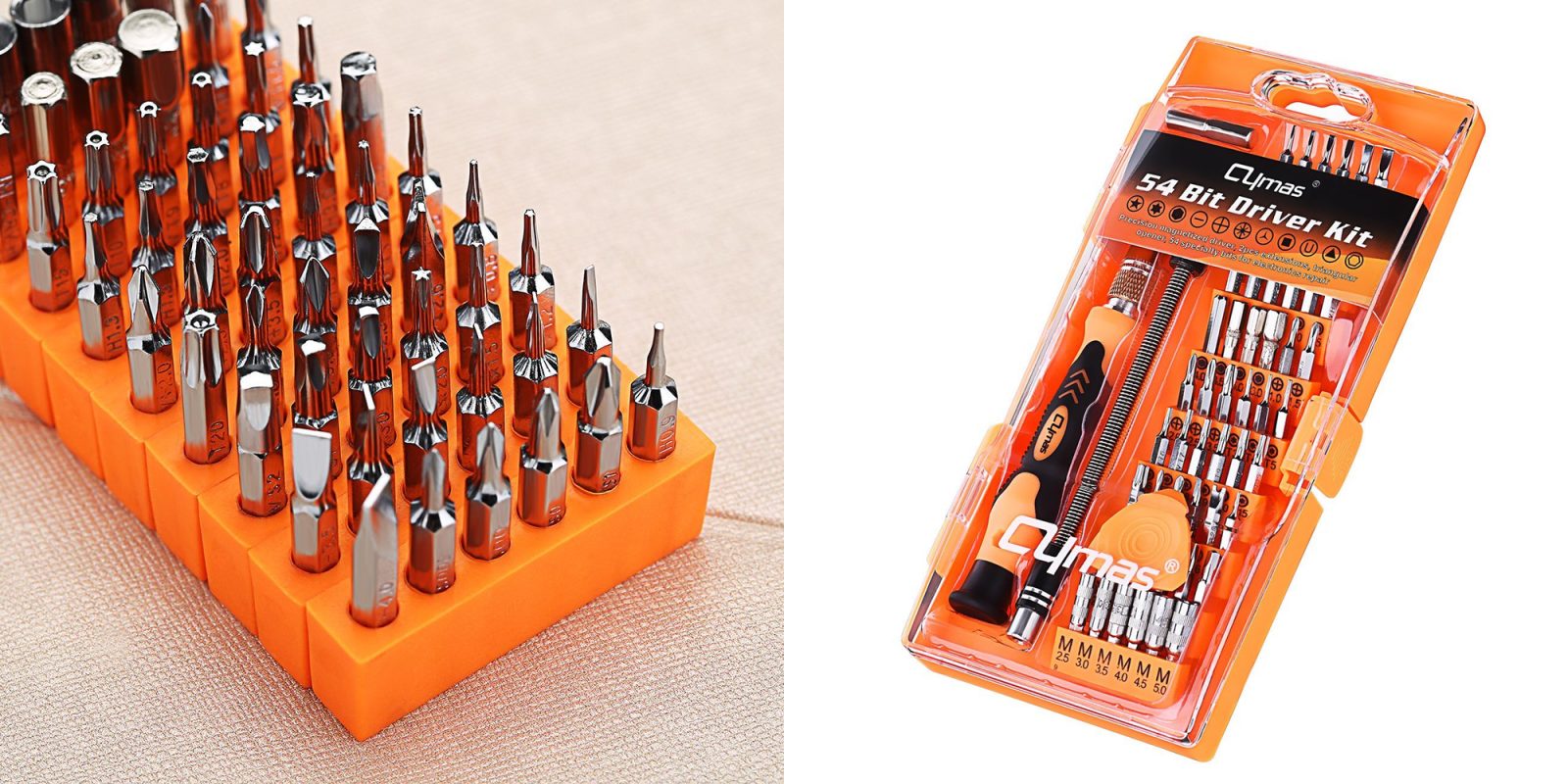 Cymas Screwdriver Set is designed to include all you would need to repair small electronics. 54 different 4mm bits are provided to use.Including flathead sizes, JIS sizes, hex sizes, Phillips sizes, torx security, triangle size, U2.6, pentalobe sizes, square sizes and nut driver sizes. Perfect for disassembly and prepare mobile phones, laptops, game consoles, PSP, X-box, PC, eyewear, watches and many other electronics.