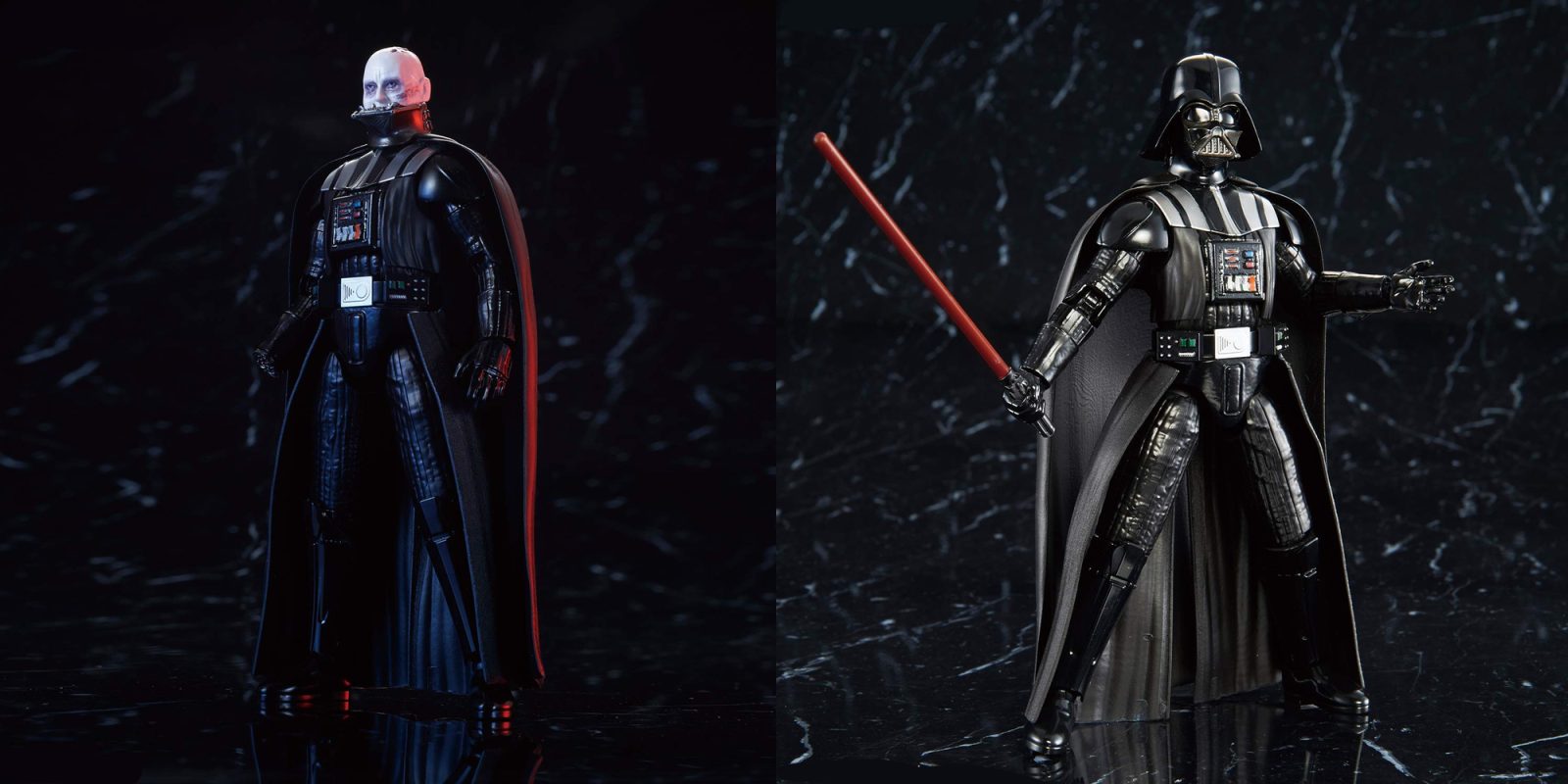 Today’s release will be Bandai’s second Darth Vader model kit available. Like the new R2-D2 we saw earlier this summer, it will stack up to the same 1/12 scale and comes pre-painted. This time around though, the new Darth Vader kit is based around the Sith Lord’s appearance at the end of Return of the Jedi. As such, he comes decked out with a few additional details like a removable helmet, swappable right arm and more.