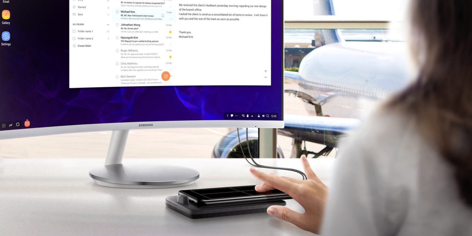 Samsung DeX enables you to turn your Galaxy smartphone into a true desktop computing experience*. By docking your smartphone into the DeX Pad, your phone will launch a special DeX mode on the connected external monitor and applications can be opened in multiple separate windows. Connect a mouse or keyboard for added productivity or even use your phone screen as a touchpad.