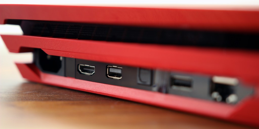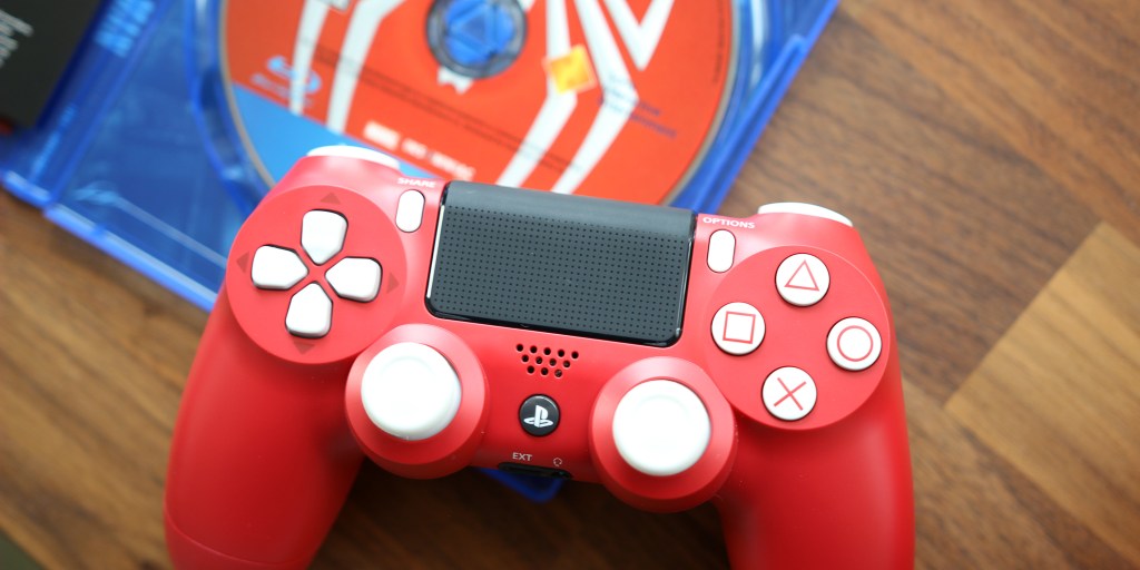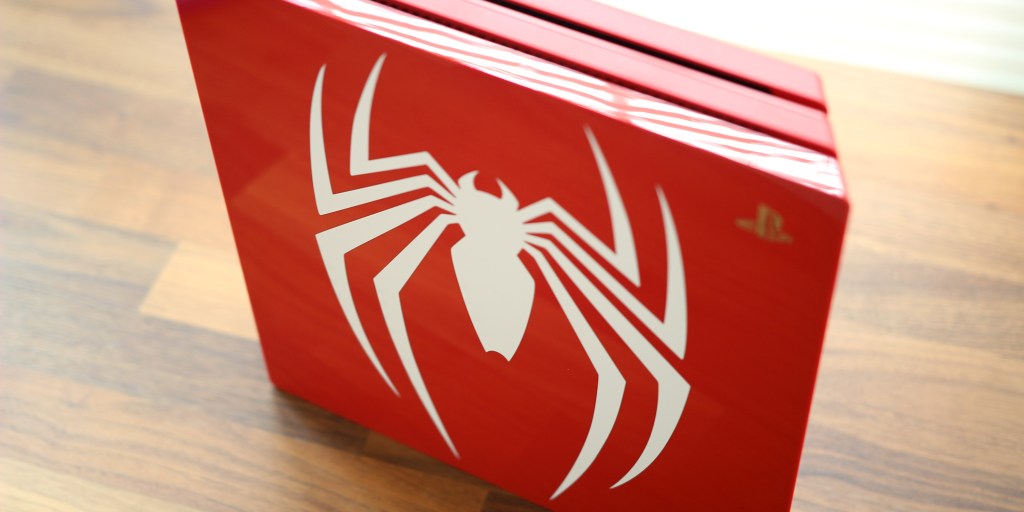 The Spider-Man edition PS4 Pro ditches the all-black look of the standard console for “Amazing Red,” and it’s a sight to behold in-person. The console has a glossy top with the Spider-Man logo dead center, and the entire console is dressed up in a gorgeous bright red color. Accents are primarily still black, though.