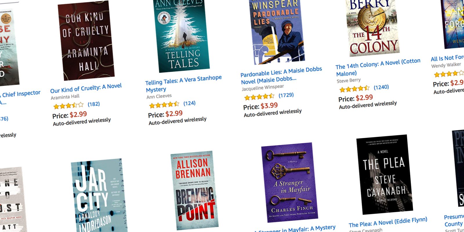 Today only, as part of its Gold Box Deals of the Day, Amazon is offering a selection of mysteries, thrillers and other Kindle eBooks starting at $2.99. You can normally expect to pay around $10 for these titles, many of which have fallen to all-time lows. There’s something for just about any type of fiction novel fan and almost all of the eBooks have 4+ star ratings. With fall weather just around the corner, there’s nothing better than curling up on the couch and enjoying great new book. Find your next read by shopping the entire sale.