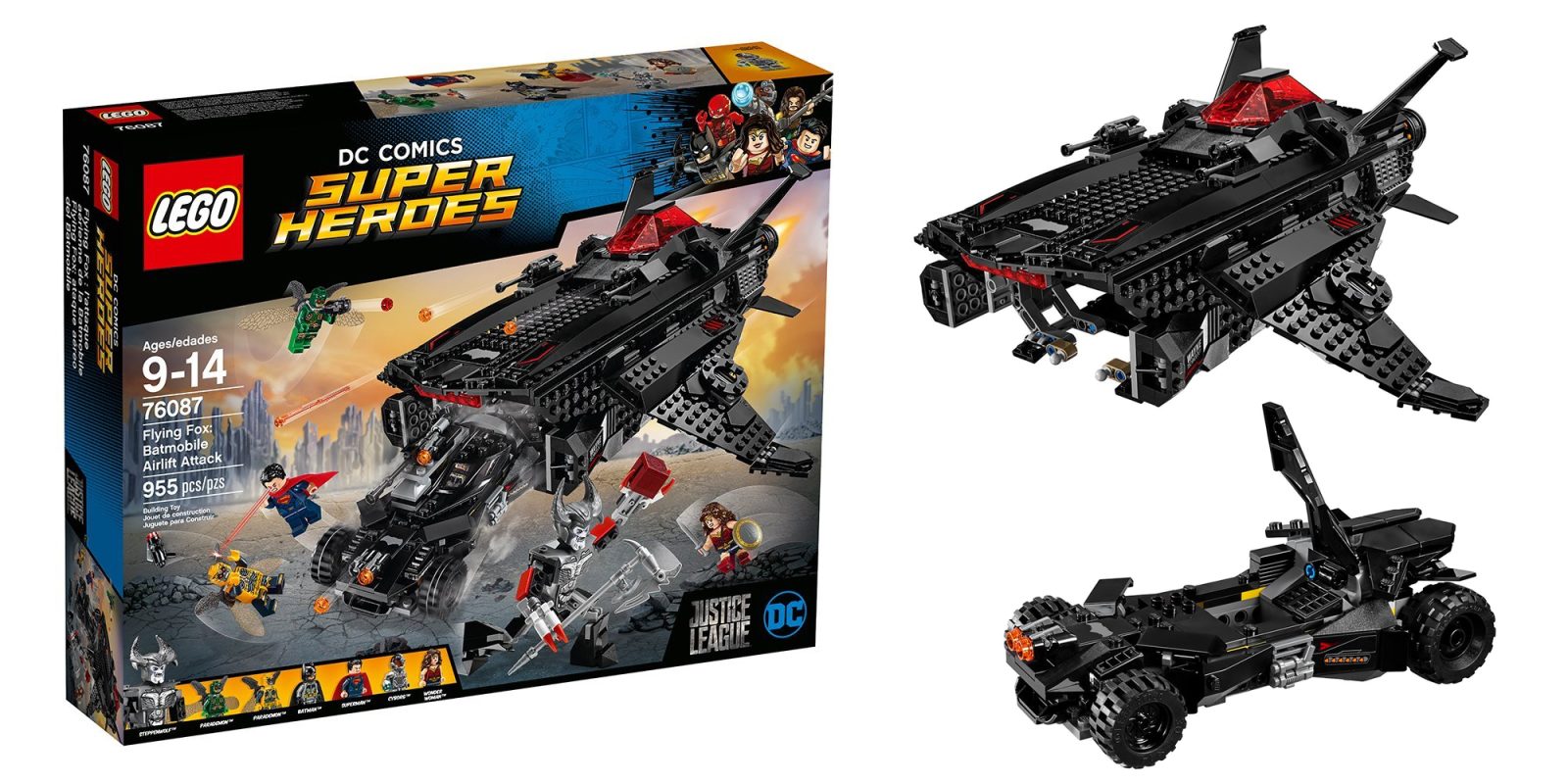 - Build the Flying Fox and carry the Batmobile into action alongside the Justice League!