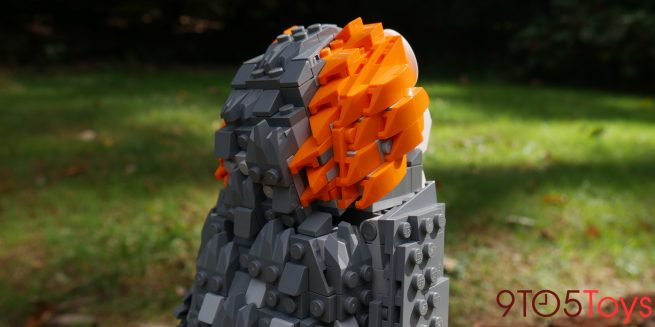 As far as the outside is concerned, the Port is mainly comprised of dark grey and white bricks with occasional sprinklings of orange. Its bright head and wide eyes make it instantly recognizable as the beloved Porg. But all of the other brick-work doesn’t go unnoticed. There are a lot of unique techniques leveraged to achieve the birds plumage and overall form.