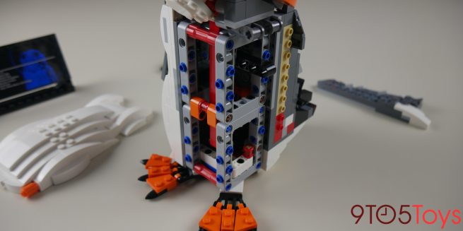 The Porg’s construction is based around a hollow Technic frame that houses some mechanics. It’s by no means uncommon for sets to be structured around an internal armature, but things are a bit different this time around. All of the external bricks fit on like a shell thanks to some Technic pins. Handfuls of past sets have used a similar technique, but none have the frame and aesthetic elements so divided.