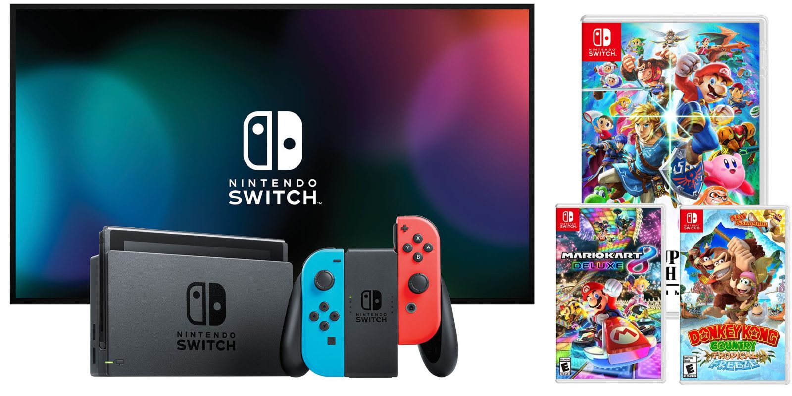Nintendo Switch + Smash Bros, Mario Kart 8, Donkey Kong & $50 GC for $440 ($530 value)