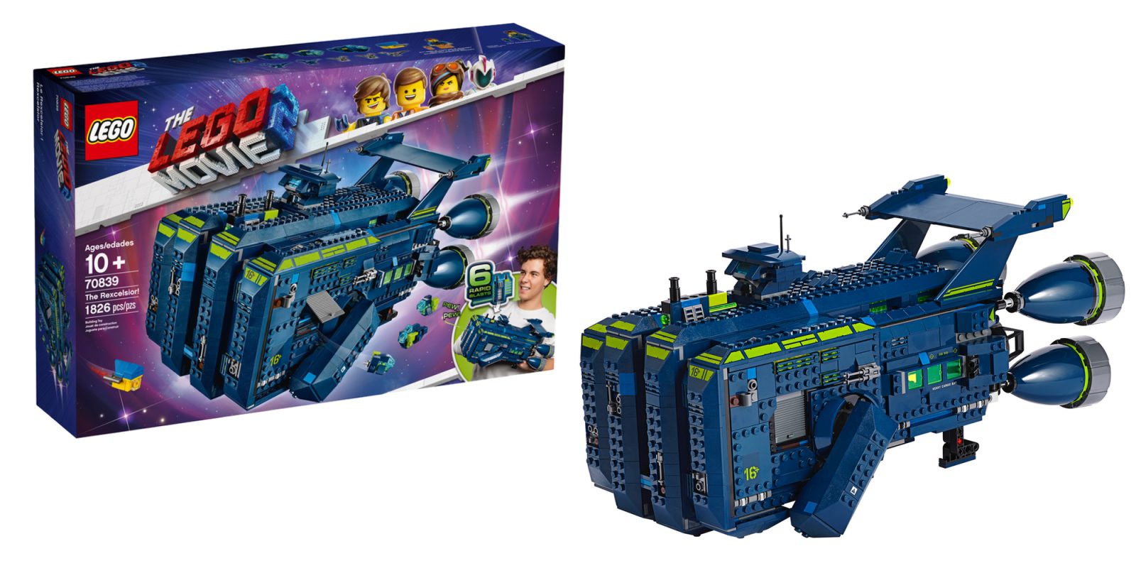 The Rexcelsior set is the latest in line of sets created to tie-in with the upcoming LEGO Movie 2. Measuring over 15 inches long, the build sets itself apart from LEGO’s extensive catalog of spaceships by being crafted almost entirely from purple elements.