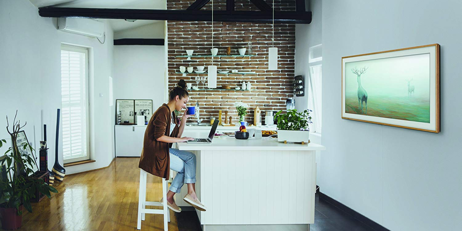 - Art Mode: The Frame transforms into a beautiful work of art when you’re not watching TV. Activate the built-in motion sensor so whenever you walk into the room, your TV displays one of your favorite selections.