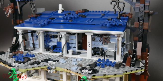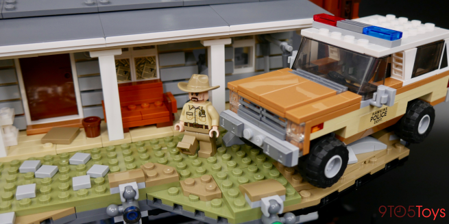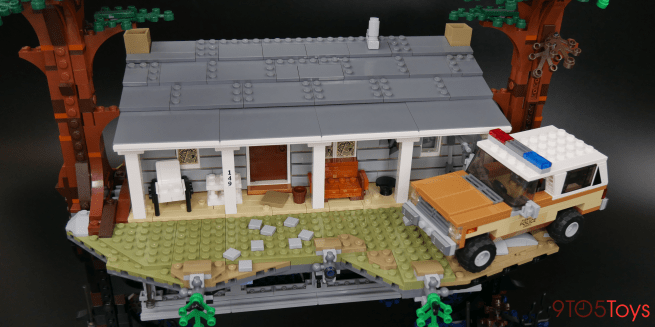 A lot of techniques from LEGO’s line of Creator Expert City kits have been borrowed to recreate the Byer’s home. The house’s siding is wonderfully constructed and the two trees which flank the build are well-designed too. As for holding the two halves of the creation together, LEGO took advantage of some interesting ball joint elements to keep everyone in place.