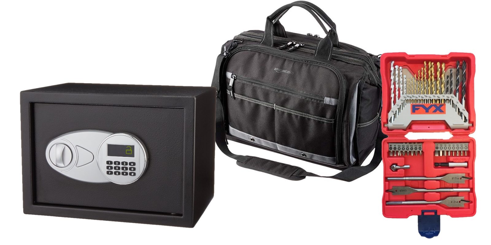 - 0.5-cubic-foot security safe with electronic lock and 2 emergency override keys
