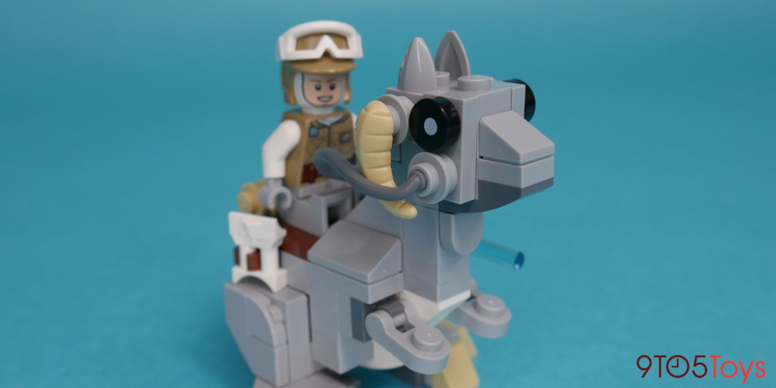 Let’s start with the better of the two LEGO Hoth Microfighters. The Tauntaun is expertly crafted and enters with about all of the details you could hope for. Even though we’re talking about a Microfighter here, the build is actually spot on for minifigure scale. While it’s more of a static creation in that the only moving part is a posable tail, you’ll find plenty of inclusions like reins, a saddle, and clips for Luke’s binoculars that all add up to an authentic re-creation of the snow planet steed.