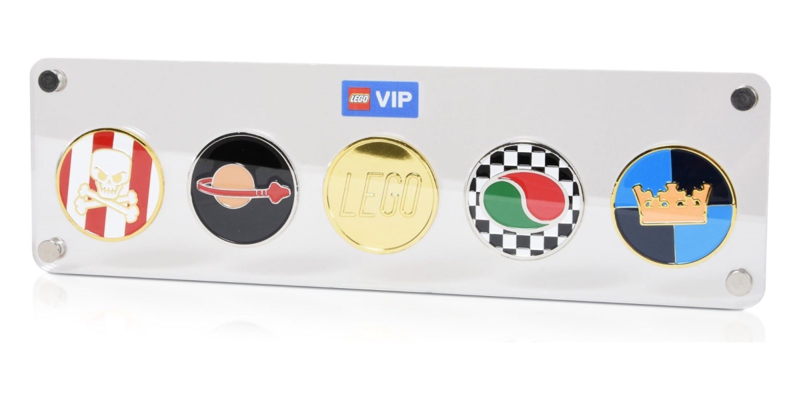 As a quick refresher, the LEGO VIP Collectible Coins arrive in five different designs inspired by classic themes. There’s a standard gold LEGO coin at the center of the collection, which pairs with versions based around Classic Space, Pirates, Octan, and Castle. A transparent display case is also going to be available for showcasing them as a single unit.