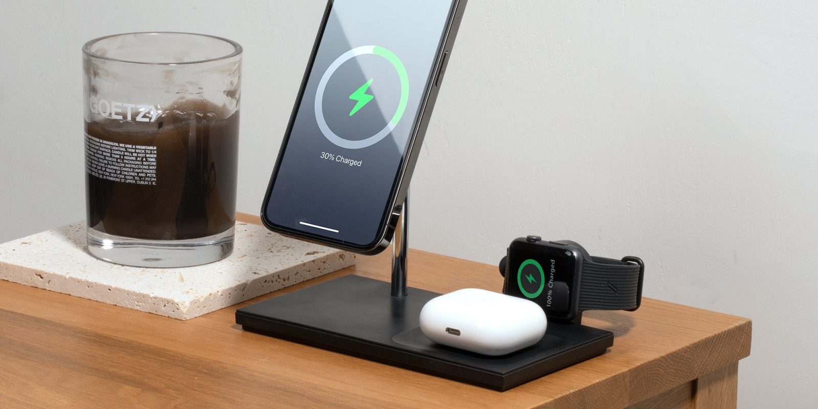 Your all-in-one power solution. Snap your iPhone 12 or 13 to the magnetic stand, drop your AirPods or AirPods Pro in the wireless tray, and place your Apple Watch on our detachable puck for seamless everyday power. Designed with your everyday ease in mind with an adjustable head for flexible access to your iPhone while charging.
