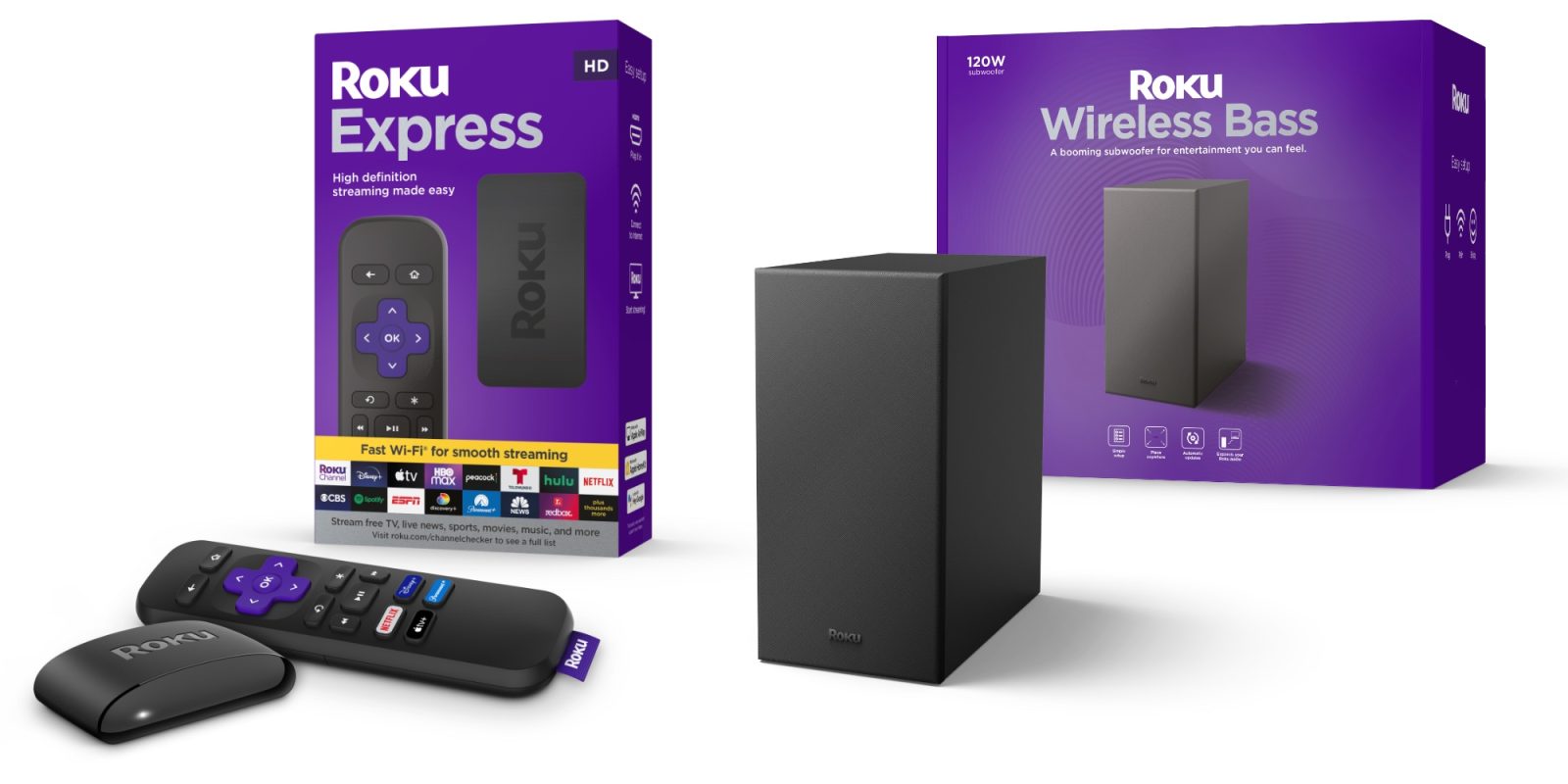 Today, Roku is expanding its lineup of streaming media players and companion accessories with the debut of a new affordable home theater upgrade and add-on to existing surround sound setups. The new Roku Express has been refreshed with some more modern features and the same affordable price tag, which joins the entirely new Roku Wireless Bass to bring some added low-ends to your home theater setup.