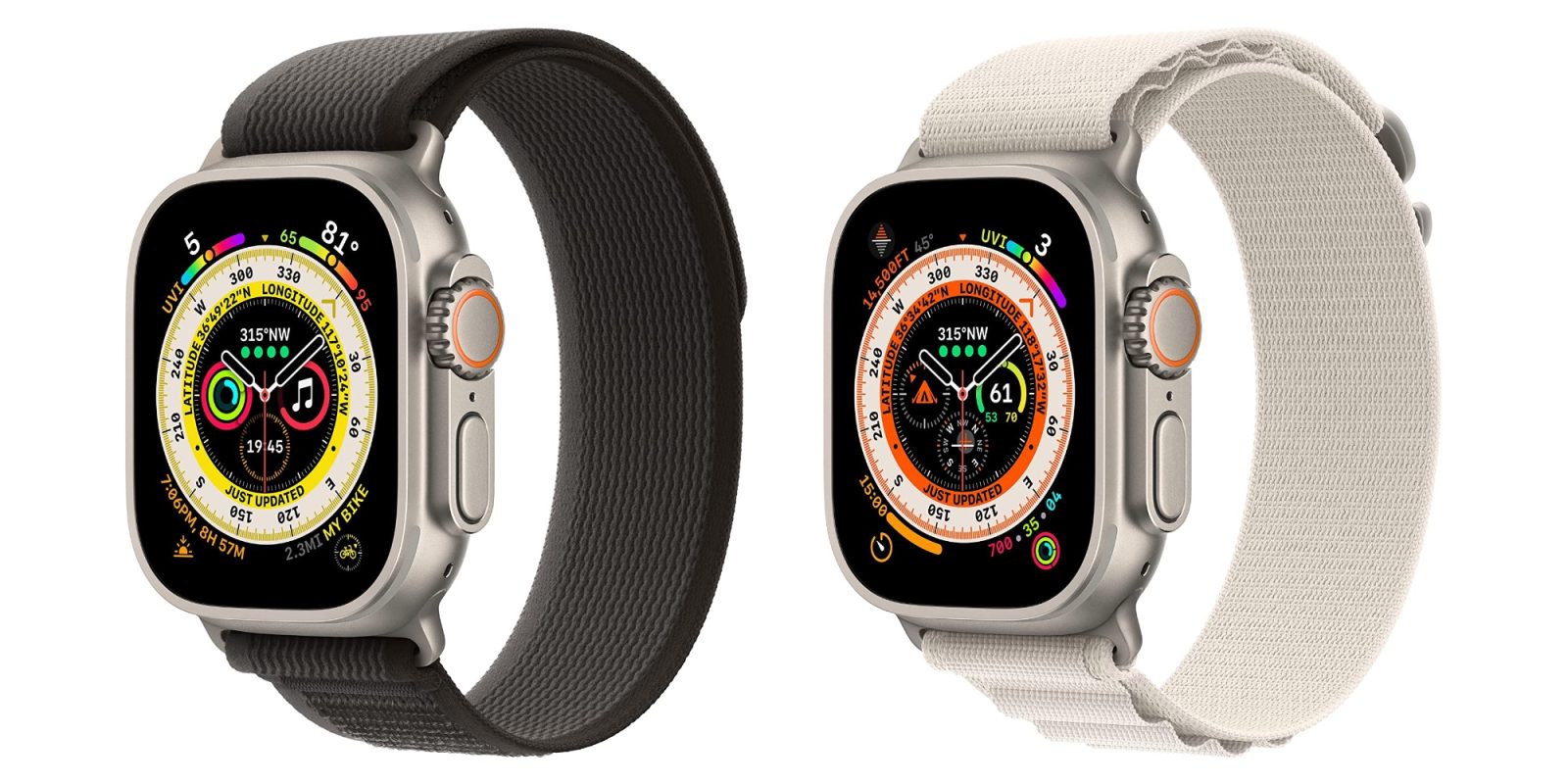 The thin, lightweight Trail Loop is made from a soft double-layer nylon weave, with a convenient pull tab for quick adjustments on the go. The Trail Loop, Alpine Loop, and Ocean Band are designed for Apple Watch Ultra and pair best with the 49mm case size. The bands are also compatible with 44mm and 45mm cases.