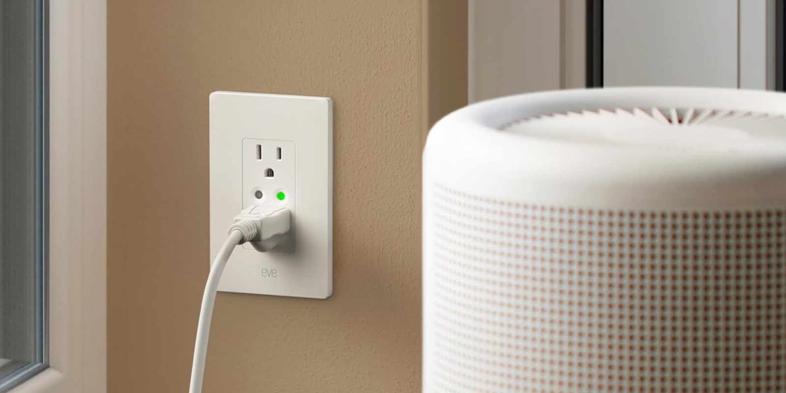 Eve’s in-wall Energy Outlet sits nearly flush with the wall itself and offers two individually-controllable outlets. Each one can monitor the power draw from lamps or appliances that are plugged in, as well.