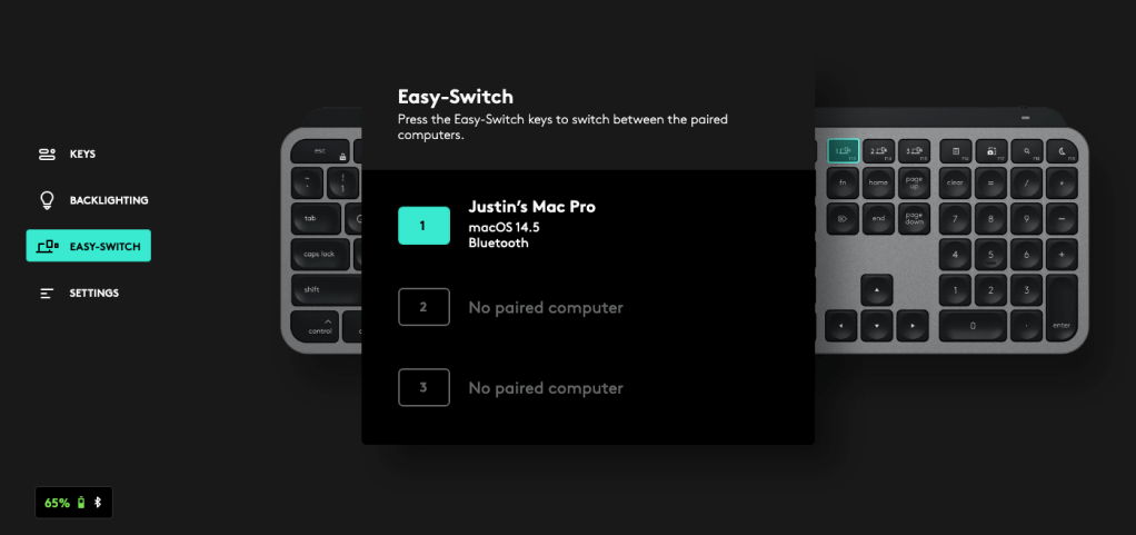 Now let’s talk Logi Options+ – the app used to customize the experience and adjust the settings. There’s nothing overly groundbreaking here, but it is a clean and simple way to mess around with the keyboard’s settings – the Mac app does not need to be running or open to use the keyboard if that wasn’t already obvious, it’s there for when you need it.