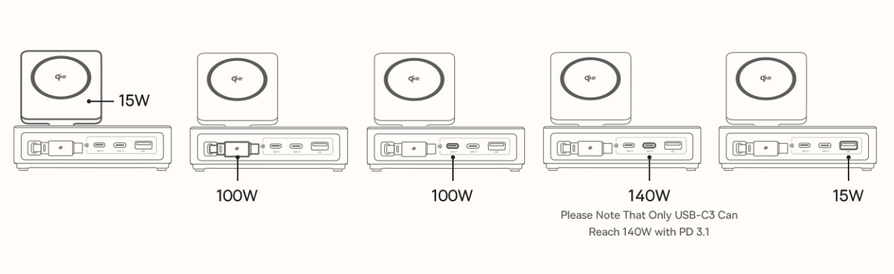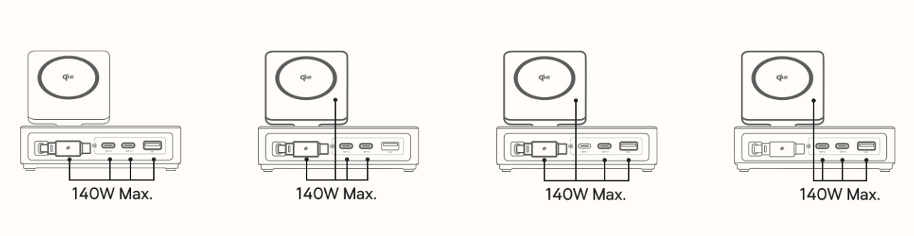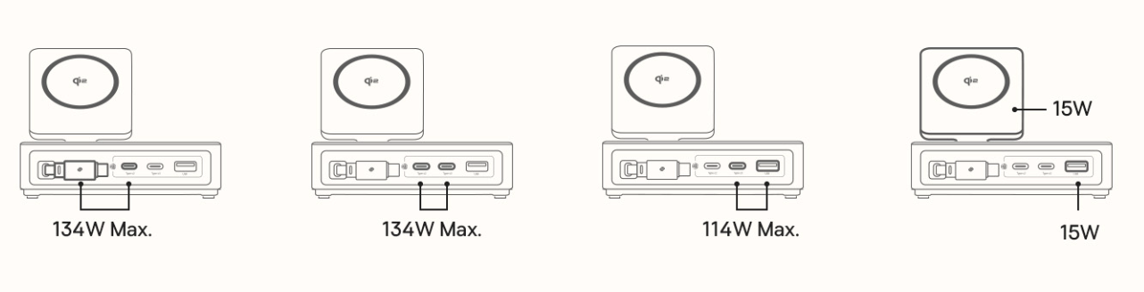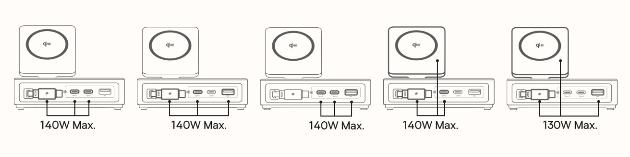 Here’s a visual breakdown of how the max 1q40W of power is allocated across the unit depending on how many devices are charging up: