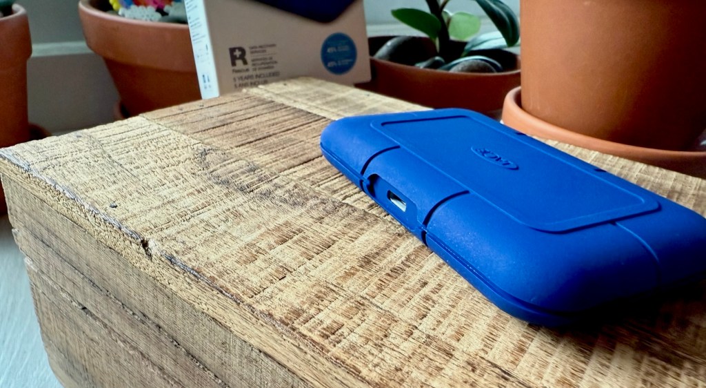 My initial takeaways are that LaCie and Mr. Poulton are delivering another pretty drive here. This one is completely-wrapped in the blue rubberized housing and I’m totally here for it. It doesn’t seem to be rated to safeguard its internals any better than most options out there, but it certainly feels like it’s going to be able to – don’t worry I’ll be testing out that 3-meter drop protection soon.