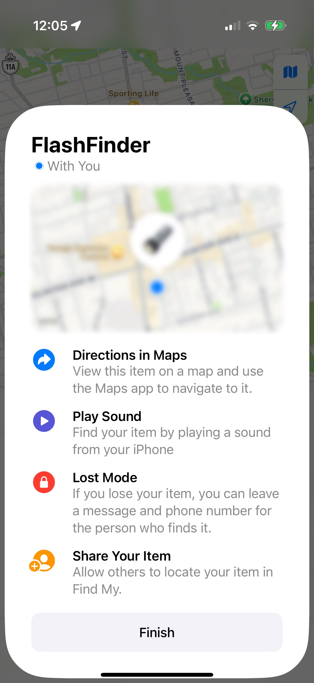 Now let’s talk Find My. Or rather let’s not as it all just works perfectly the first time. You short press the main button to turn the FlashFinder on, select it in the add device menu in the Find My app, name it, choose an emoji to represent it on the Find My app, and you’re set. Find My is now engaged on the FlashFinder just like it would be on any other third-party device.