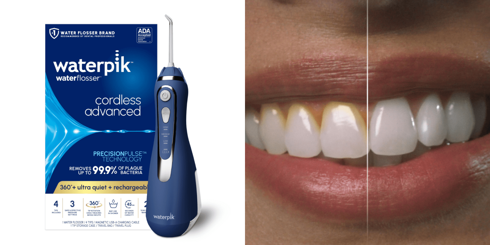 - Waterpik Cordless Advanced features a 360 degree rotating tip for easy reach, even back teeth. Convenient rechargeable design with up to 4 weeks of use per charge, rapid magnetic USB charger, and LED recharge indicator.