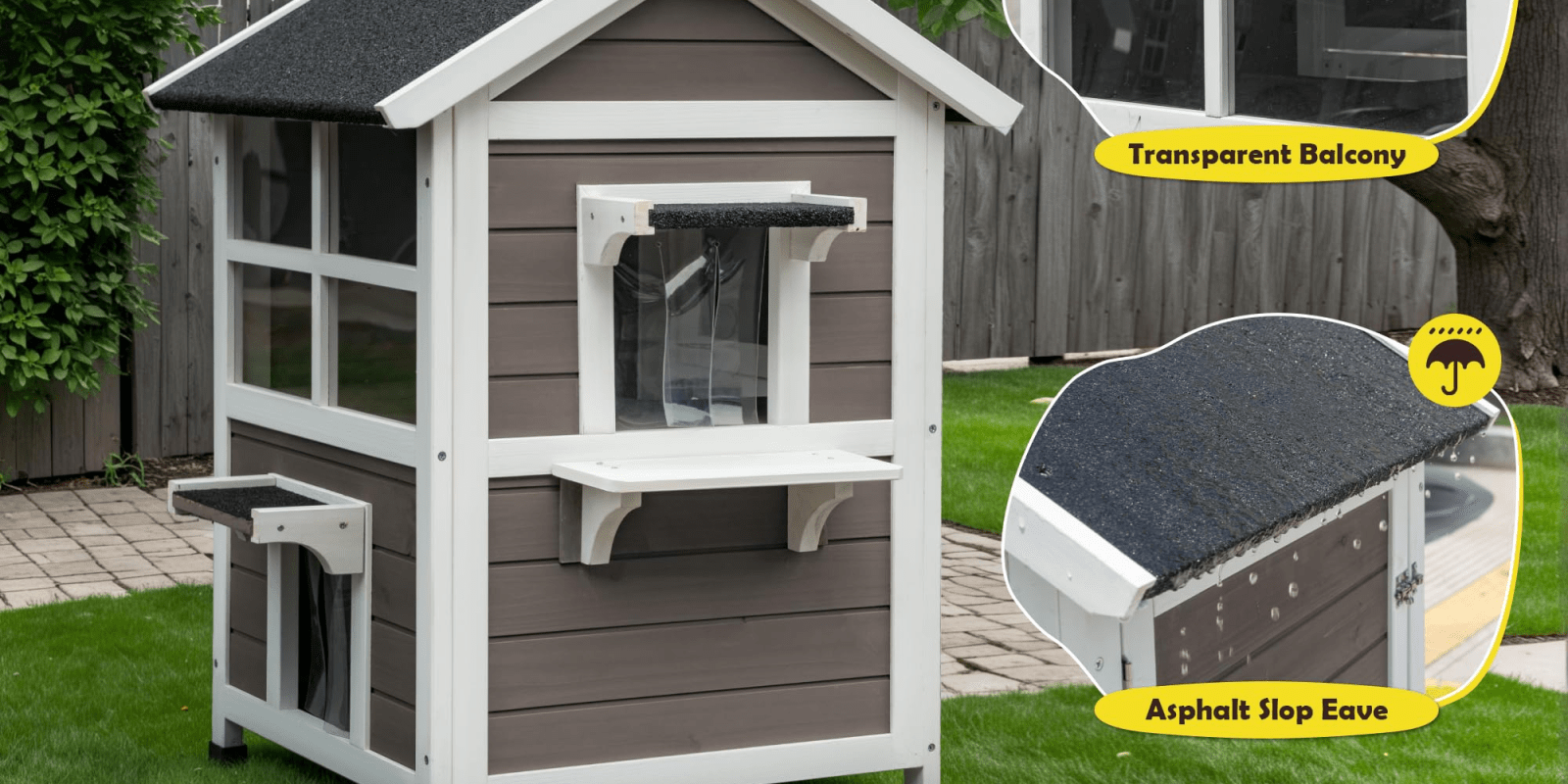 Greesum Indoor/Outdoor Two-Story Cat House features: