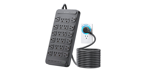 If there’s a room in your home that is lacking outlets where you need them, this lengthy surge protector is ready to solve that problem. It boasts a 10-foot cable that allows you to get a total of 10 power sources from one side of a room to another. In total, you’re looking at six AC outlets, two USB-A, and dual Type-C.