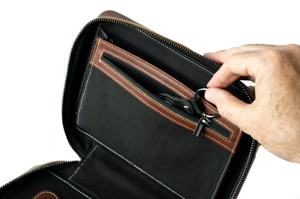 Alongside the leather that develops a “rich patina over time,” you’ll find a gunmetal gray YKK zipper as well as a “durable” cloth lining and a host of internal organization options: