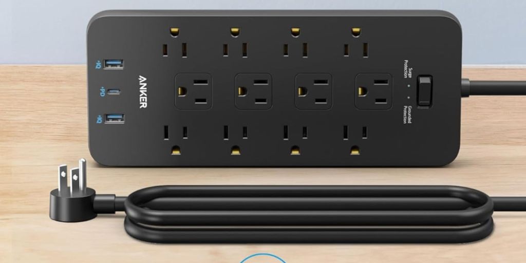 If you need to get power across a room, a lengthy option like this can help get you there. This particular power strip boasts a 15-foot cord and brings three outlets with it. Two other perks that stand out to me include the flat wall outlet plug and cord, which I think give it a more streamlined and minimalistic vibe.
