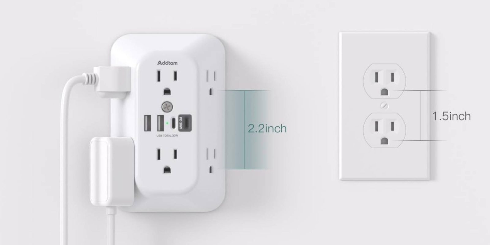 - The 3 AC outlets and USB ports are specially arranged in a square, which enlarges the distance between outlets and is perfect to plug large power adapters without blocking other outlets.