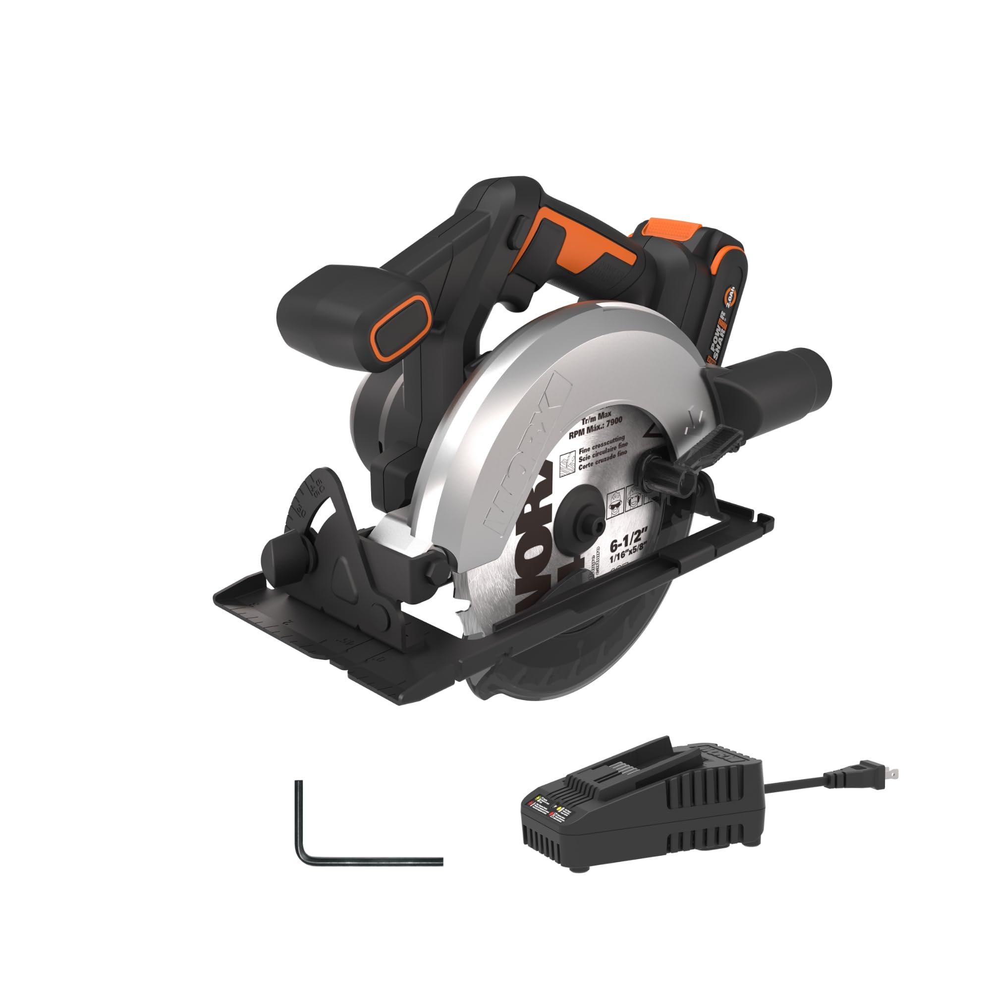 WORX 20V 6-1/2″ Cordless Circular Saw, 2.0 Ah Battery