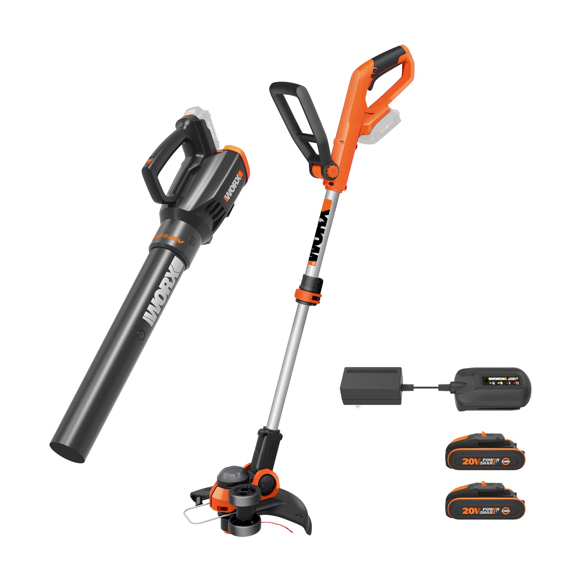 WORX 20V 12″ Trimmer & Leaf Blower Combo, 2 Batteries