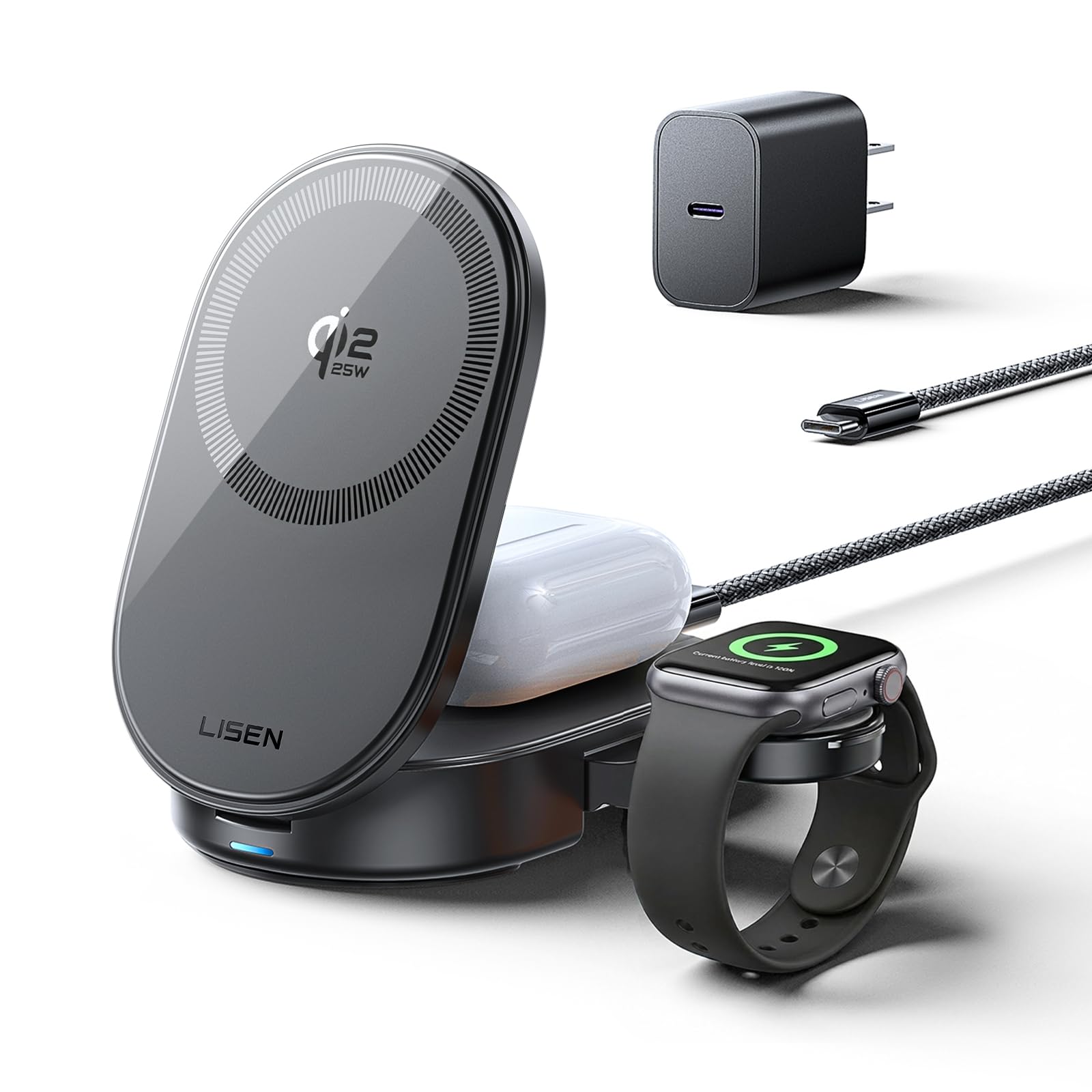 LISEN Qi2.2 25W MagSafe 3-in-1 Charging Station
