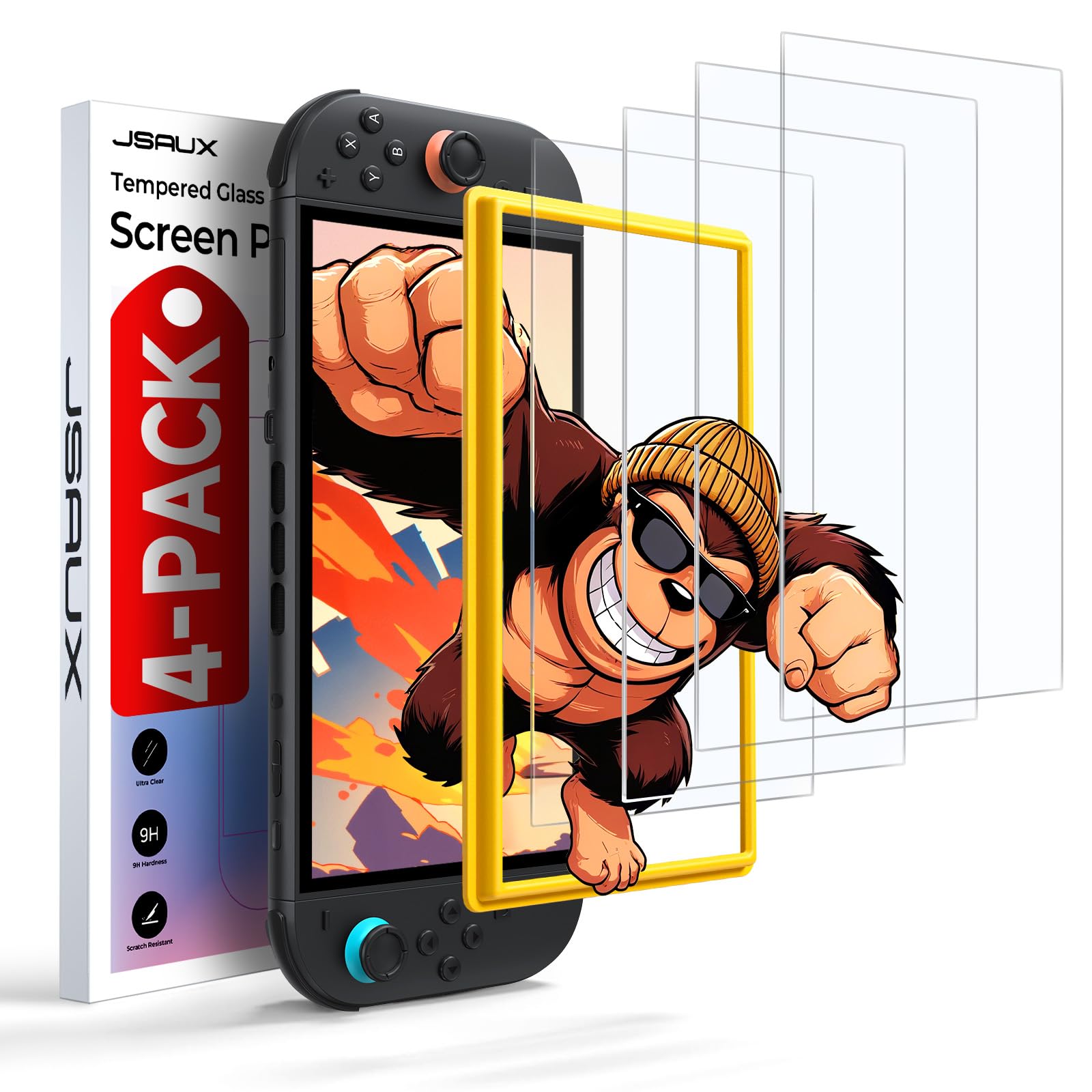 JSAUX 4-Pack Tempered Glass Screen Protector for Nintendo Switch 2 (2025), Easy to Install with Guiding Frame Ultra HD Glass Protector 9H Hardness Scratch Resistant Accessories for Switch2