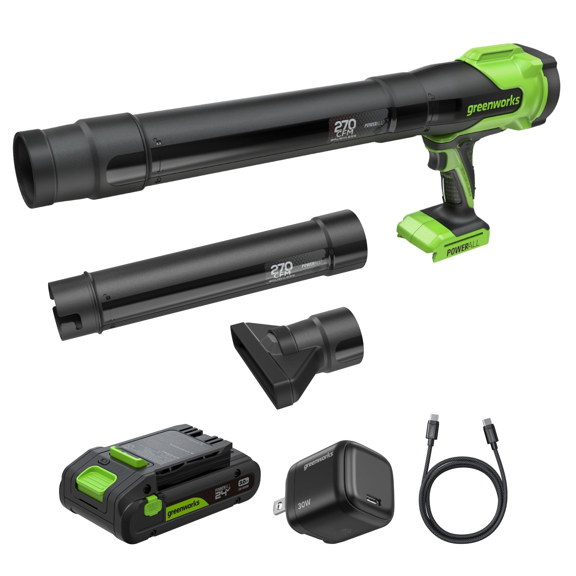 Greenworks 24V Brushless Leaf Blower, 3.0Ah Battery