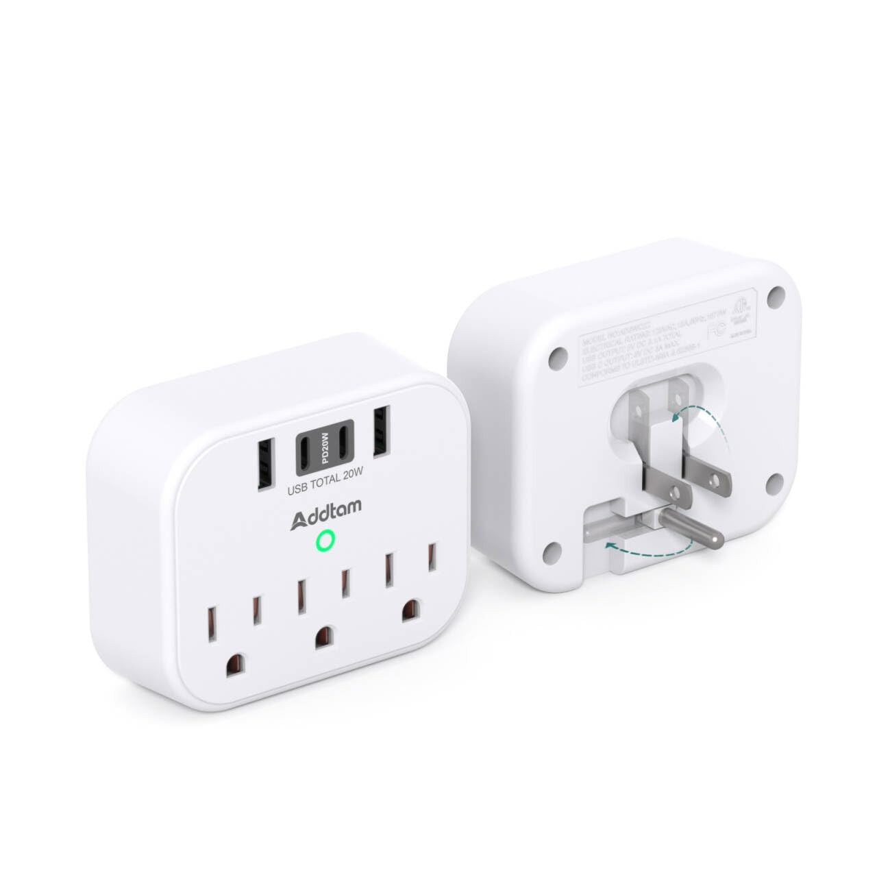 Addtam Cruise Power Strip, 3 Outlets, 4 USB (PD 20W)