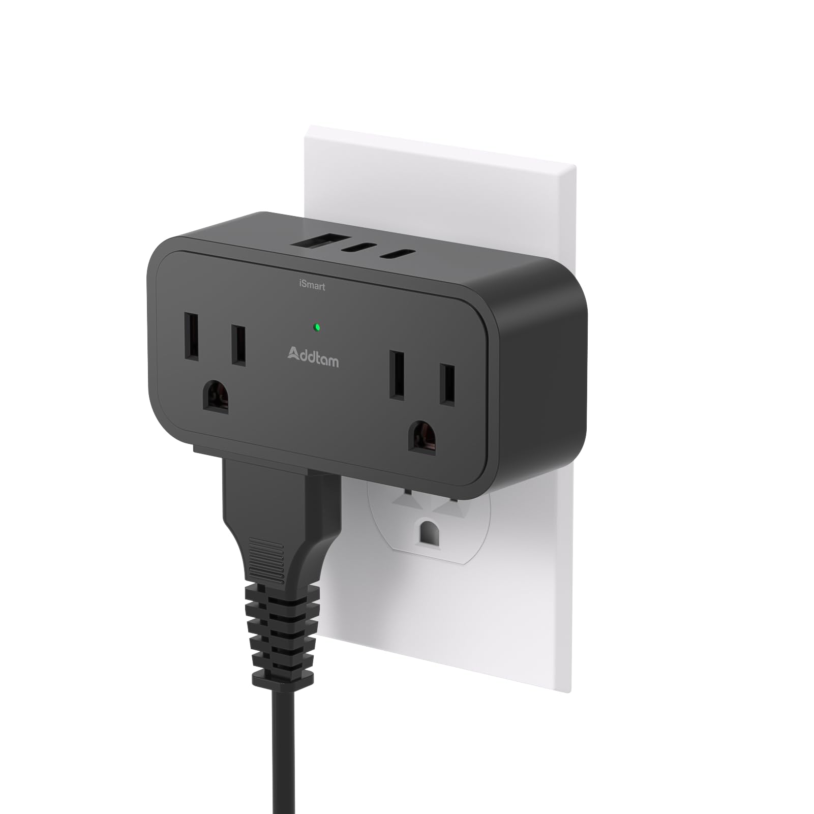 Addtam Outlet Extender, 4 USB (2 USB-C), Black